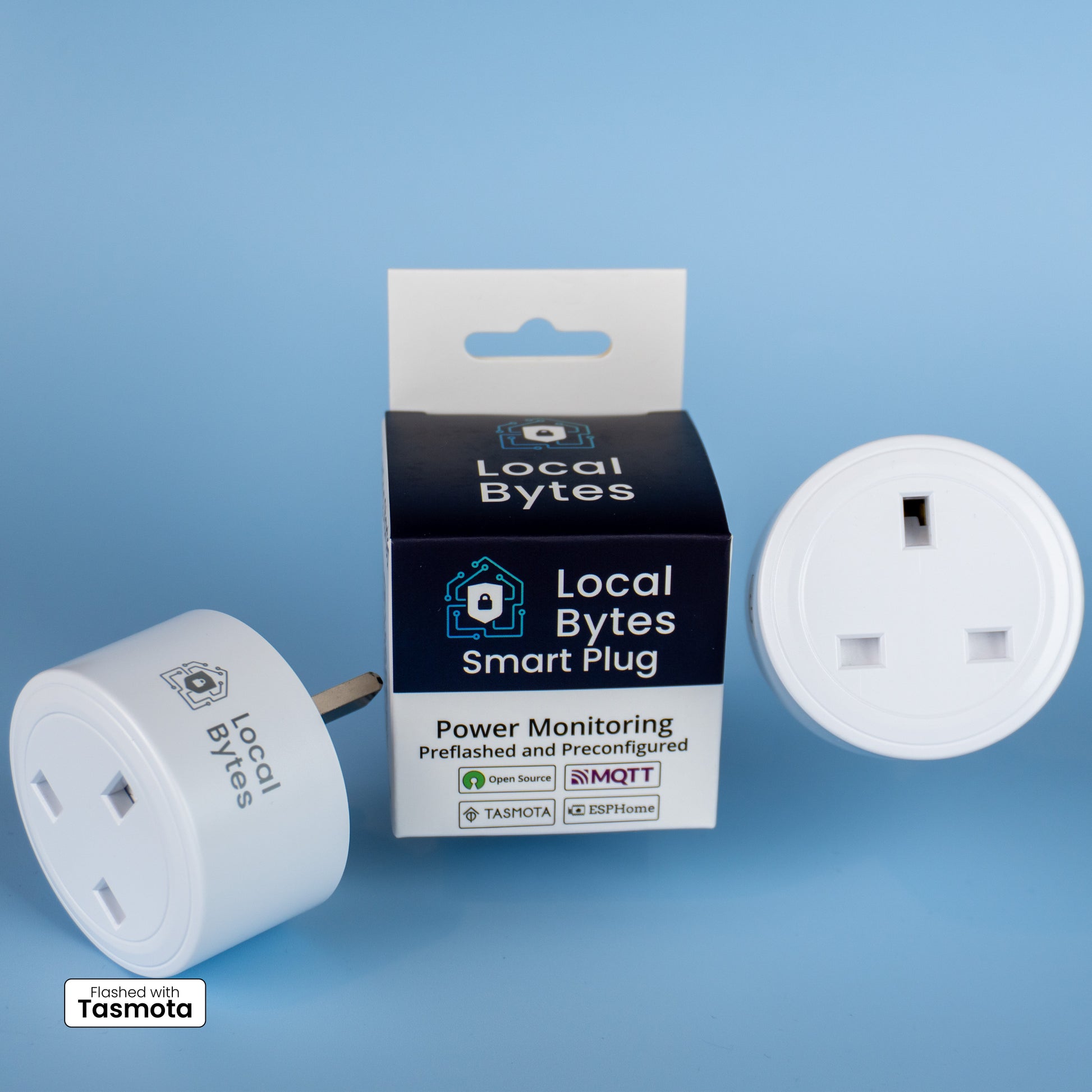 The Local Bytes Power Monitoring WiFi Smart Plug, preflashed with Tasmota/ESPHome.